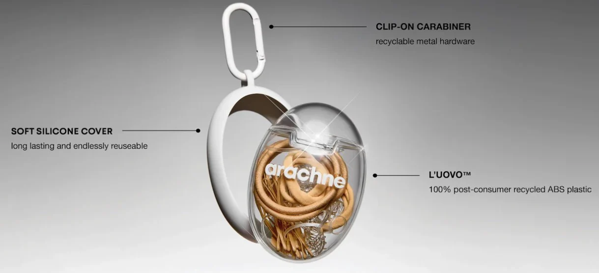 This iconic 38-piece collection of perfectly curated hair essentials is neatly stored in a reusable egg-shaped case. Compact, travel-friendly, and endlessly versatile, L’UOVO™ clips effortlessly onto your keychain, purse, luggage… and *other* baggage. Made from 100% recycled materials, this refillable and reusable case delivers sustainability with style and every hair fix. Whether at home, at the gym, or on the go, L’UOVO™ is always ready to tackle any hair emergency.